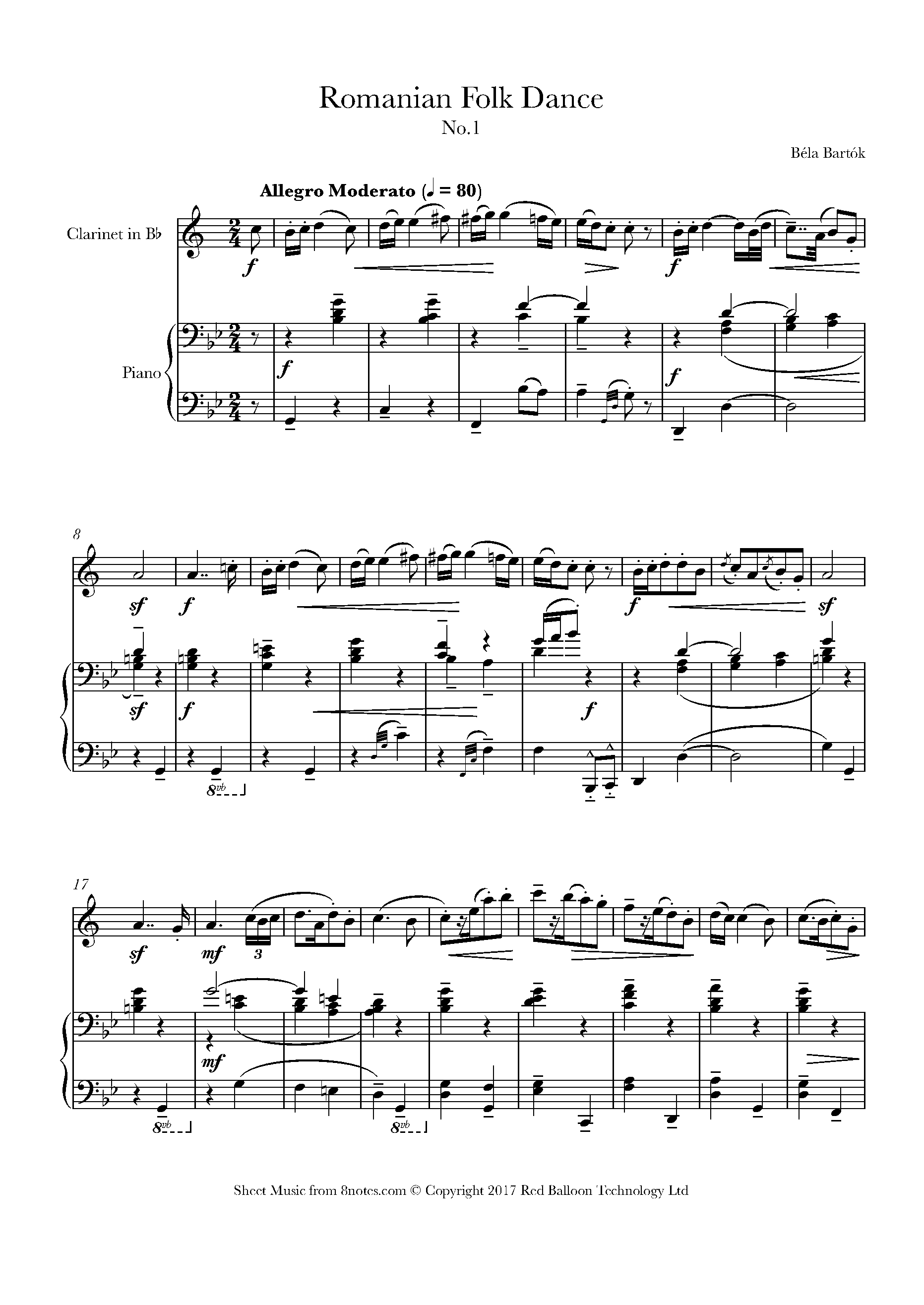 This is the first movement from a suite of six pieces composed by Bartók in 1915 and orchestrated by him in 1917. It is based on seven Romanian tunes from Transylvania, originally played on a fiddle or shepherd's flute. This movement is entitled "Bot tánc / Jocul cu bâtă" ("Stick Dance"). According to the composer, he heard its melody being played by two gypsy violinists in a village in Transylvania.