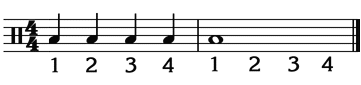 Below is an example of two bars written in 4/4 time. The first bar contains 4 quarter-notes, each