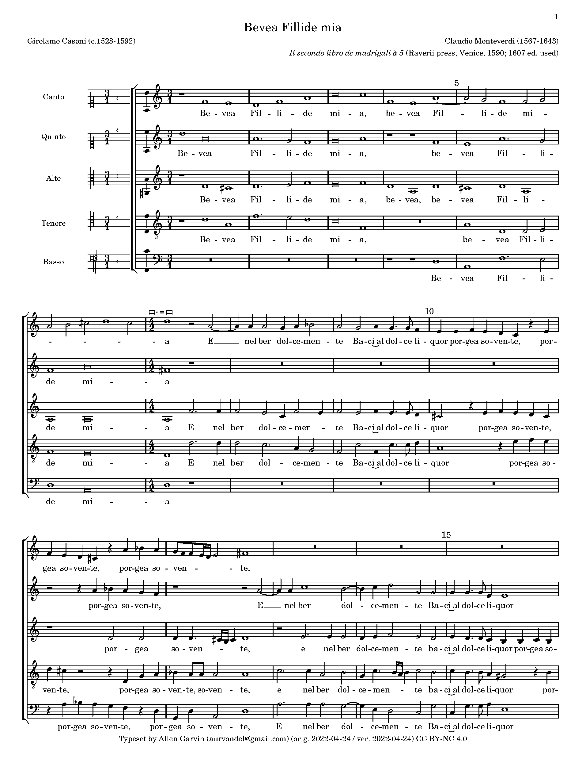 Monteverdi, Claudio - Bevea Fillide Mia