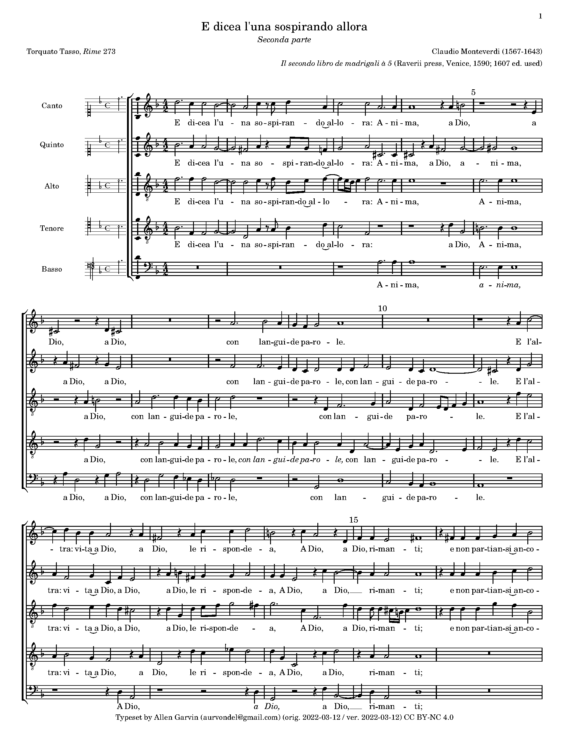 Monteverdi, Claudio - E dicea l'una sospirando (Non si levav'ancor l'alba novella, Seconda parte) (Madrigal)