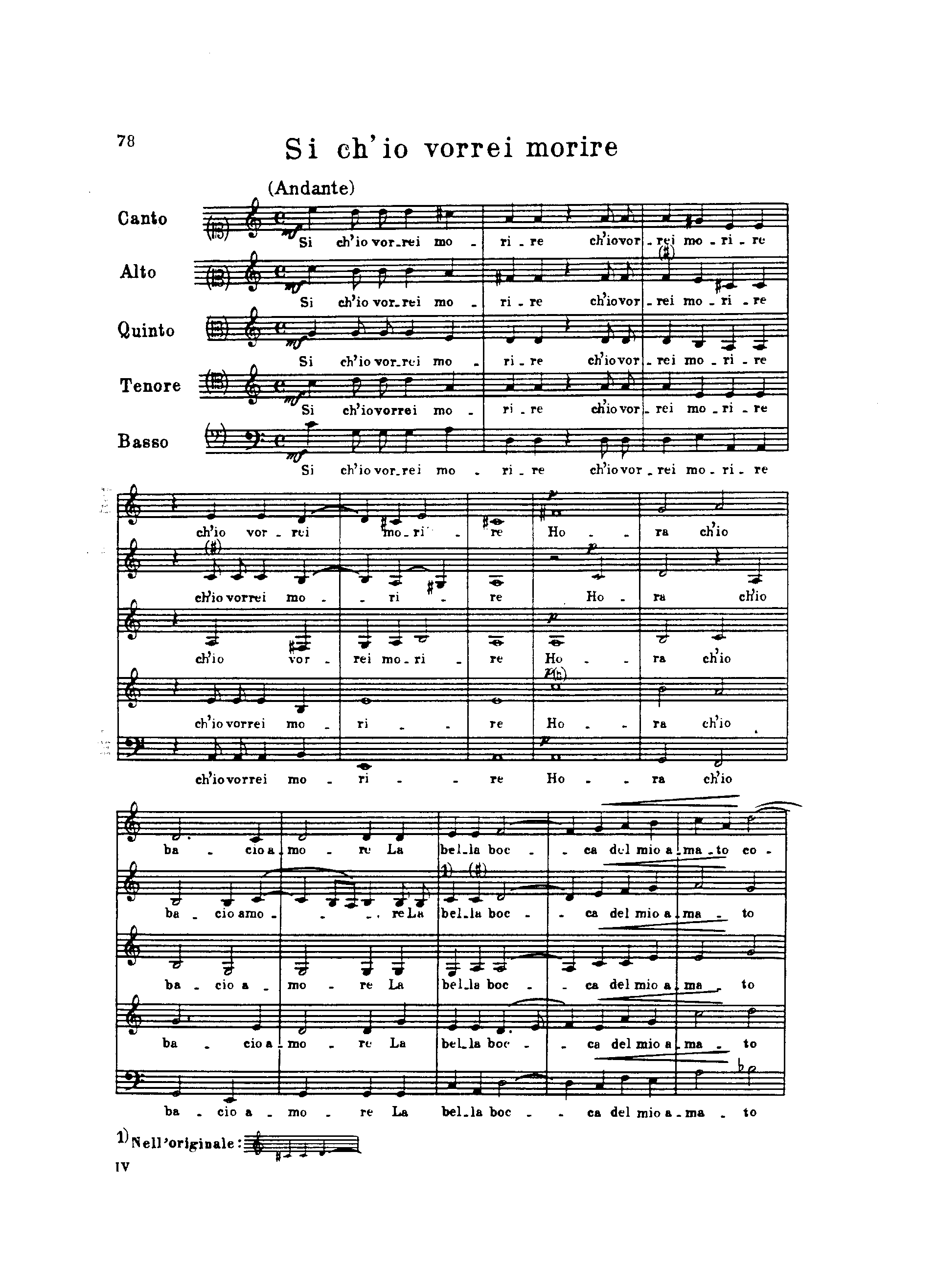 Monteverdi, Claudio - Si ch'io vorrei morire hora ch'io bacio amore, SV 89 (Madrigal)