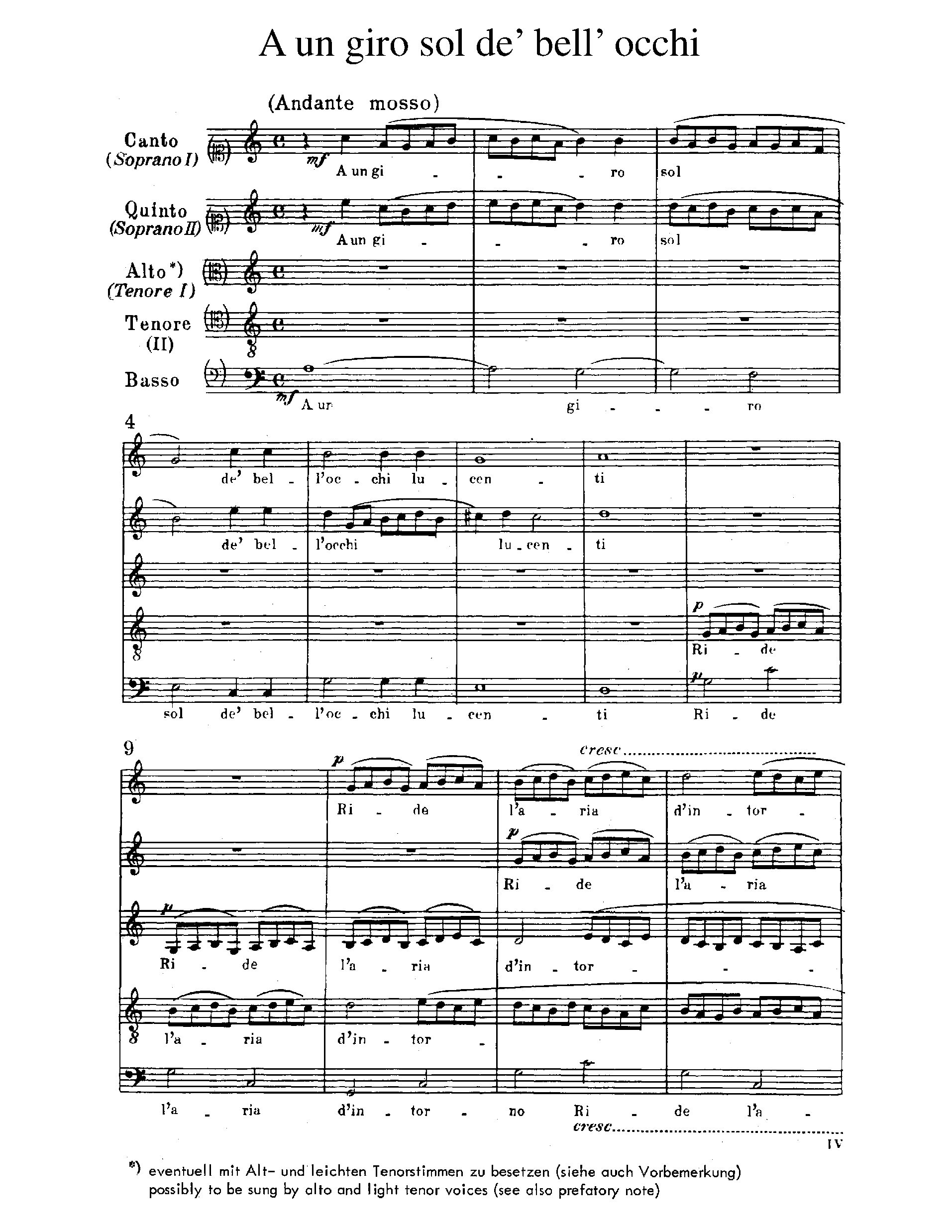 Monteverdi, Claudio - A un giro sol de' bell' occhi lucenti, SV 84 (Madrigal)