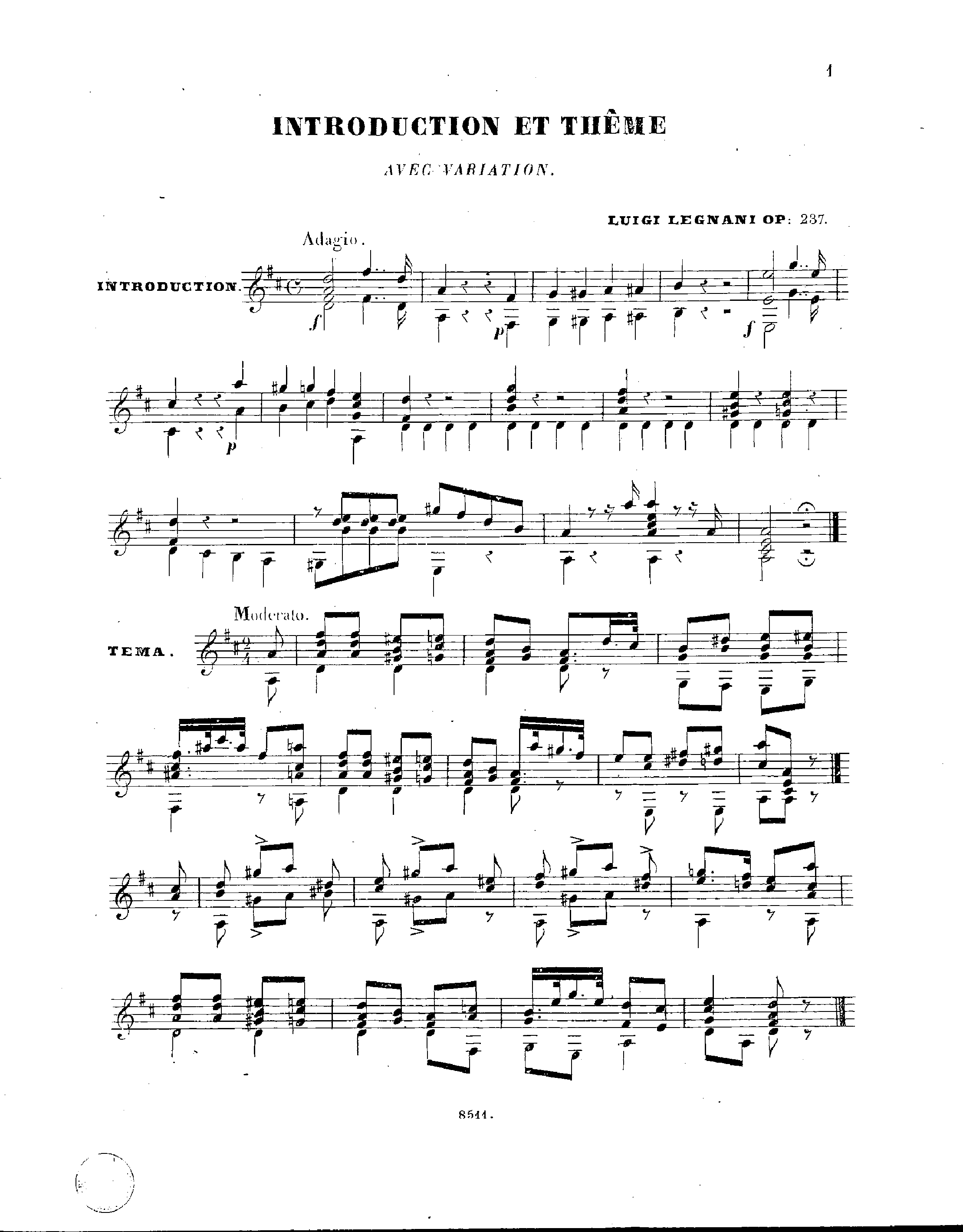 Legnani, Luigi - Theme and Variations for Guitar, Op.237
